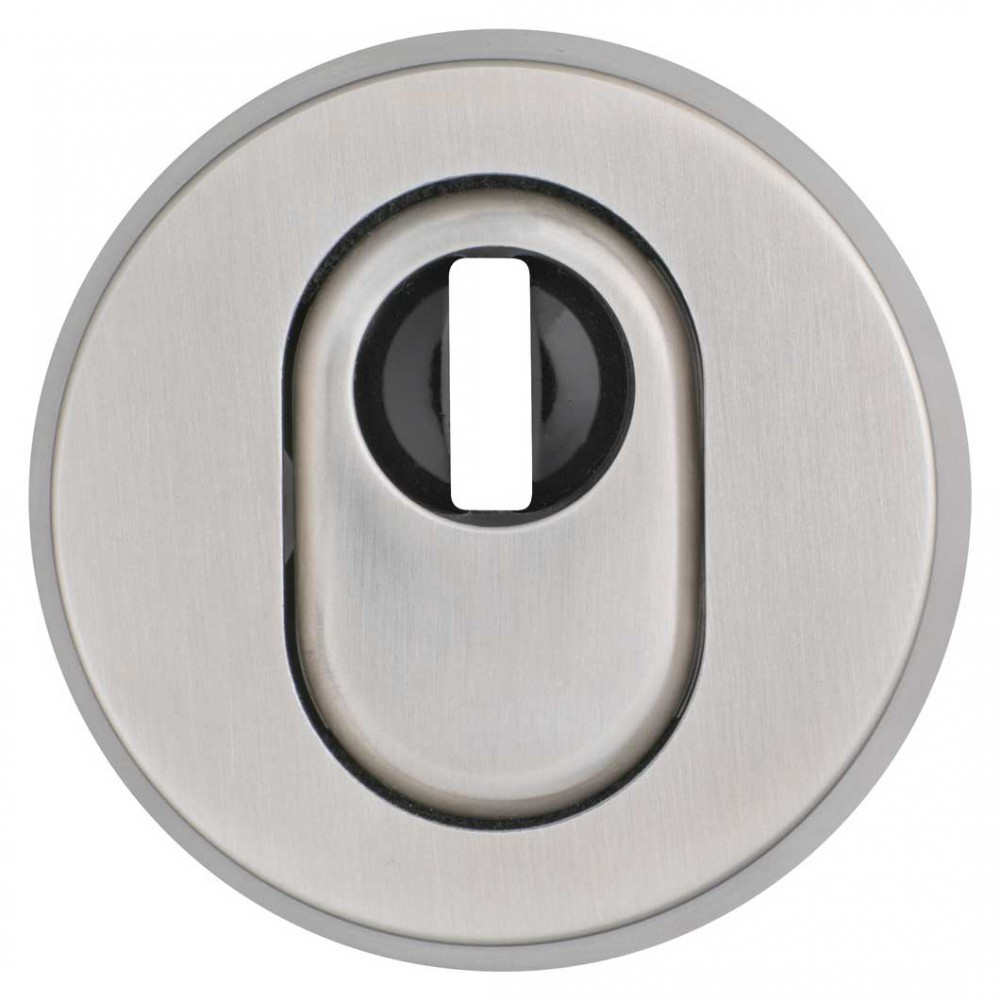Die Schutzrosette eignet sich zur Verwendung an Holztüren. Variable Anpassung an Zylinderüberstände sind von 8 bis 15 mm möglich. Der Zylinder wird zusätzlich durch eine drehbare Scheibe aus Stahl gegen das Ziehen und Anbohren geschützt.