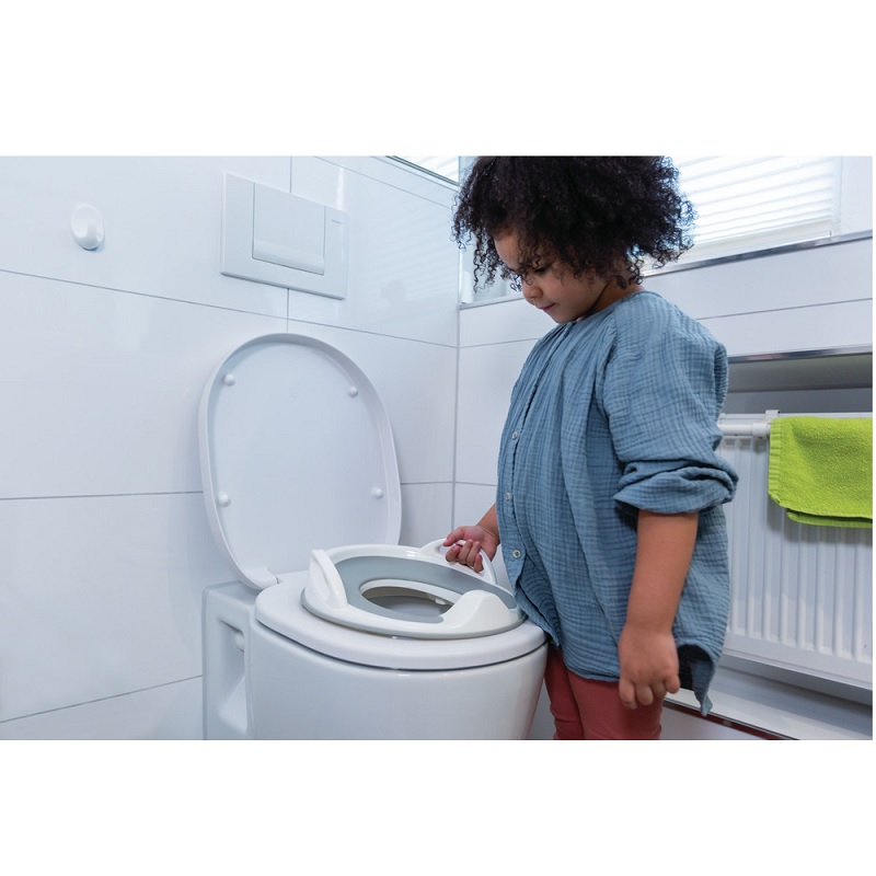 So eine Erwachsenentoilette ist furchtbar hoch, und der Sitz ist auch ganz schön breit! Unser Tipp: Helfen Sie Ihrem Kind mit dem Toilettentrainer MALTE, in seinem eigenen Tempo trocken zu werden. Ihr Wonneproppen sitzt darin sicher und kann sich an beiden Seiten an den Griffen festhalten. So können sich Kleinkinder nach und nach daran gewöhnen, aus dem Windelalter herauszuwachsen. Ebenso kann MALTE von der Größe auf die handelsüblichen Toilettensitze eingestellt werden. Dazu gibt's einen Wandhalter, an dem man MALTE einfach aufhängen kann. Dank der dezenten Farbe passt der Toilettentrainer nahezu in jedes Badezimmer.
