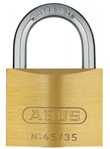 Das ABUS 45 ist ein vielseitiges Messing-Vorhängeschloss mit automatischer Bügelverriegelung, gehärtetem Bügel und einem Zylinder mit Pilzkopfstiften (ab Größe 30 mm). Das parazentrische Schlüsselprofil sorgt für erhöhten Schutz vor Manipulation.