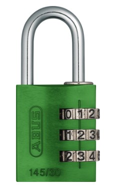 Das ABUS 145 ist Aluminium-Zahlenschloss aus massivem Aluminium mit anodisierter Beschichtung und individuell einstellbarem Zahlencode. Trotz des massiven Stahlbügels ist es besonders leicht.