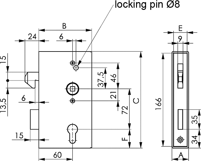 Produktinformationen "AMF Schiebetor-Schlosskasten 140SNIG-30ZW, V2A"