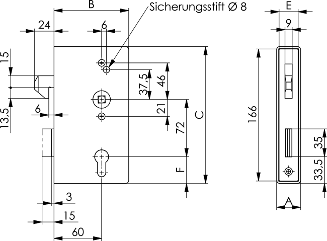 Produktinformationen "AMF Schiebetor-Schlosskasten 140SNIG-40ZW, V2A"