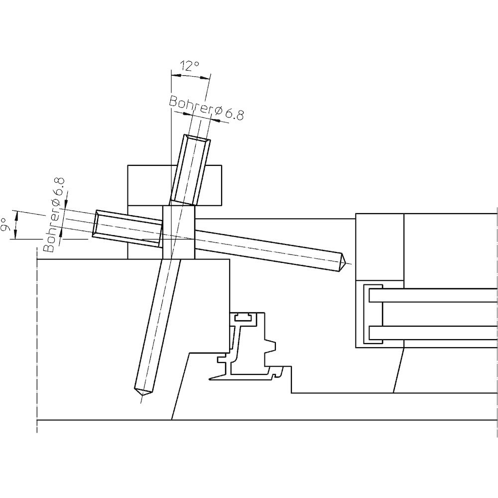 SIMONSWERK, Bohrlehre, Modell: BAKA®, Modellnummer: KR, DIN-Richtung: DIN Links-Rechts, Anwendung: Kippflügelfenster, Inhalt Bohrkörper: 1 St., Inhalt Stufenbohrer 6,8 mm Ø: 1 St., Inhalt Anschlaganweisung: 1 St., Inhalt Stellring: 1 St., Inhalt Einwindklaue 13,0 mm Ø: 1 St., Inhalt Einwindklaue 15,0 mm Ø: 1 St.