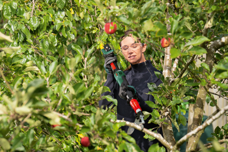 Akku-Gartenschere AdvancedPrune 18V-45. 18V-Akku-Gartenschere mit hoher Schnittkapazität für müheloses Schneiden. Quick Cut Technology für schnelle und saubere Schnitte bis 45 mm Astdicke. Einzigartiger 360°-Startschalter - Werkzeugpositionierung im angenehmsten Schnittwinkel. Langlebige Edelstahlklingen liefern optimale Schnittleistung. LED-Akkuzustandsanzeige zeigt auf einen Blick den Ladestatus. Syneon Technology für optimale Kraft und maximale Laufzeit. POWER FOR ALL ALLIANCE: 1 Akku, 10+ Marken, 150+ Produkte. Messerabdeckung