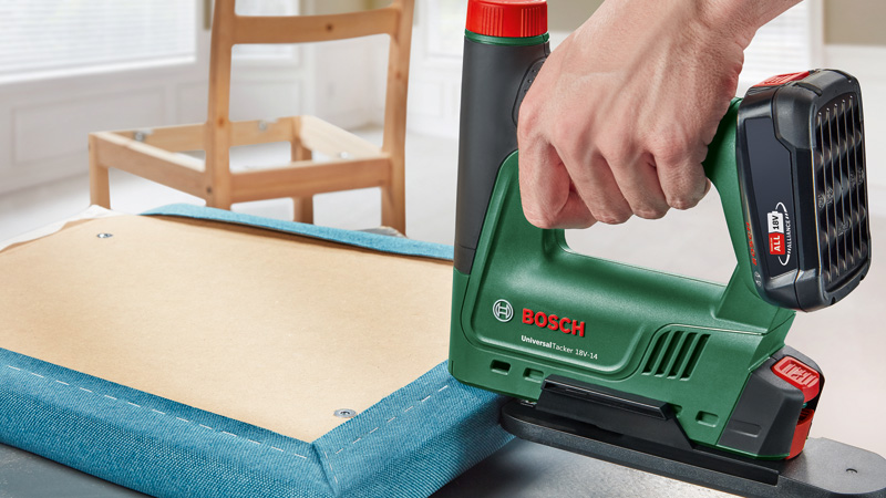 Akku-Sprühpistole EasySpray 18V-100. Einfaches, intuitives Aufsprühen von Farben mit perfekten Ergebnissen auf Holz und Metall. Leicht und ergonomisch dank getrennter Sprüh- und Gebläseeinheit. Praktischer EasySelect-Drehschalter zur Einstellung der Farbmenge. Schultergurt für mühelosen Farbauftrag. Kompatibel mit Bosch 18V POWER FOR ALL-Akku. Schultergurt. Reinigungsbürste. Karton