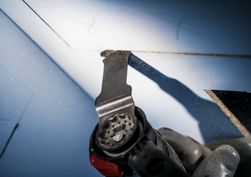 Lange Lebensdauer beim Schneiden von abrasivem Material und Verbundwerkstoffen! Dickeres Blatt für zusätzliche Robustheit und Stabilität Auffälliger Zement hinter einem Türrahmen oder unter einer Diele brachte die Arbeit früher zum Stillstand, da ein teurer Blattwechsel vorgenommen werden musste. Mit dem EXPERT MultiMaterial Segment ist dies nicht mehr notwendig. Das Blatt ist robust genug, um Fugenmörtel und Mörtel sowie Arbeitsplatten mit fester Oberfläche und abrasive Laminate und Verbundwerkstoffe zu schneiden. Es macht einfach weiter. Das Bosch EXPERT MultiMaterial Segment Blatt für Multifunktionswerkzeuge ist ein weiterer Fortschritt in der Bosch Carbide Technology: Zum ersten Mal wurde ein großer gebogener Carbide-Streifen fest mit einem Blatt für Multifunktionswerkzeuge verschweißt. Es bietet die höchste Präzision und Lebensdauer unter den Segmentblättern. Überragende Lebensdauer dank Bosch Carbide Technology