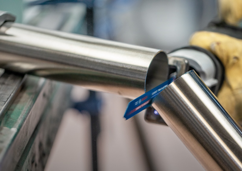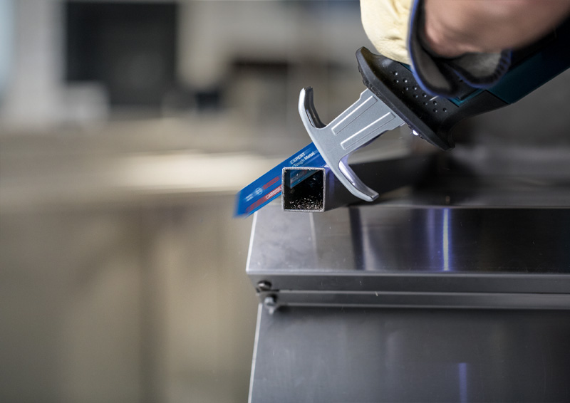 | Einsatzbereiche: | Edelstahlbleche (24 mm), Edelstahlprofile (Durchmesser < 50 mm), glasfaser?/epoxidharzverstärkte Kunststoffe (< 50 mm). Reduziere die Hubzahl, arbeite ohne Pendelwirkung. Verwende Kühlmittel. |