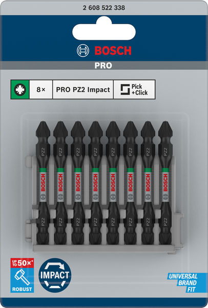 Bosch PRO Impact gemischtes Set, PH1, PH2(x2), PH3, PZ1, PZ2(x2), PZ3, 55 mm, 8-tlg.