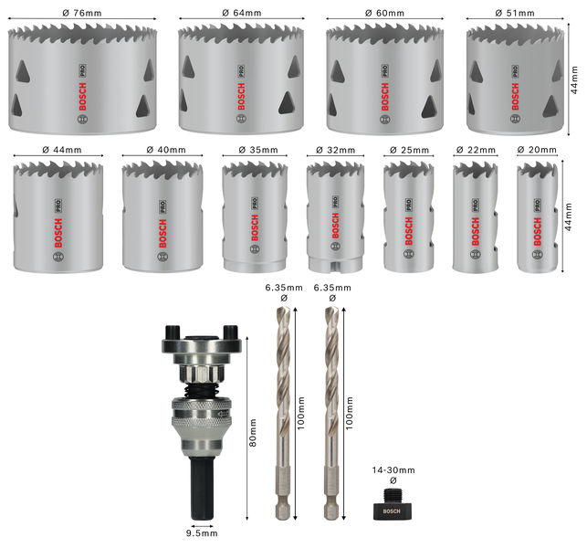 Produktinformationen "Bosch PRO Multi Material Lochsäge Q-Lock Aufsteckhalter-Set, 15-tlg."