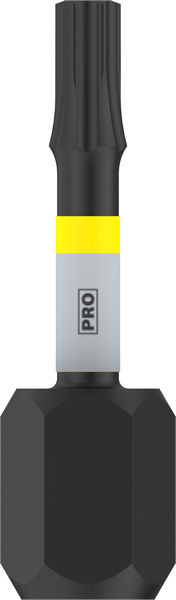 Robustes Eindrehen von Schrauben! Die spezielle Torsionszone absorbiert die Drehmomentbelastung an der Spitze des Bohrers Benötigst du Torx-Schrauberbits für das Eindrehen von Schrauben? Bits, die lange halten und bei anspruchsvollen Anwendungen gut funktionieren? Dann sind die PRO TH Impact Bits die richtige Wahl. Sie sind auf Stärke und Widerstandsfähigkeit gegenüber hohem Drehmoment ausgelegt. Die PRO T Impact Bits sind eine gute Wahl für Installateure, die auf der Suche nach robusten Schrauberbits für harte Einsätze sind. Die Bits bestehen aus wärmebehandeltem, modifiziertem Stahl für hervorragende Stabilität und Widerstandsfähigkeit gegen hohe Drehmomente. Ihre Torsionszone absorbiert die Drehmomentbelastung an der Spitze der Bits, um sicherzustellen, dass sie nicht brechen. Sie verfügen über farbcodierte Ringe, die den Kopftyp anzeigen, und Lasermarkierungen, die dir bei der Auswahl der benötigten Größe helfen.