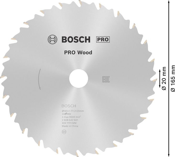 Bosch PRO Wood Kreissägeblatt, 165 x 1.7 x 20 mm