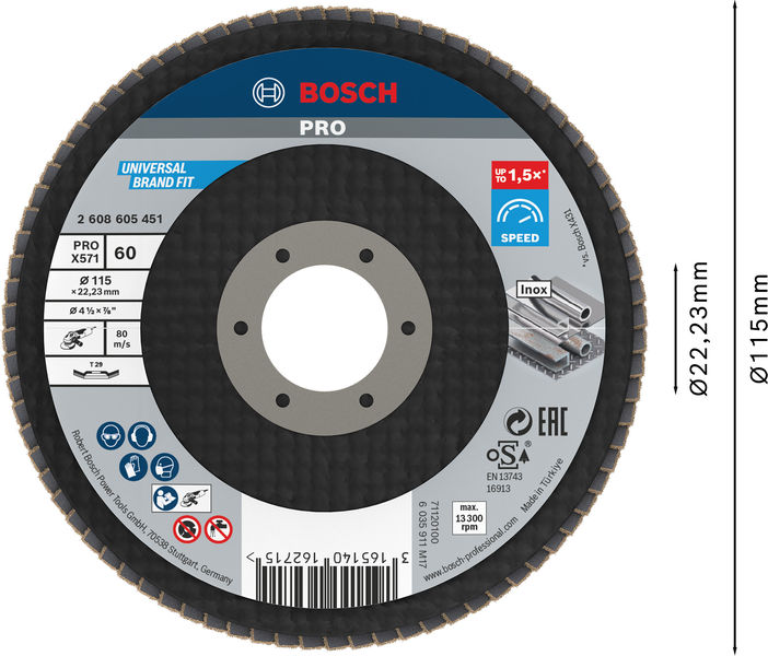 Produktinformationen "Bosch PRO X571 X-Lock Fächerschleifscheibe, 125 mm, G60"
