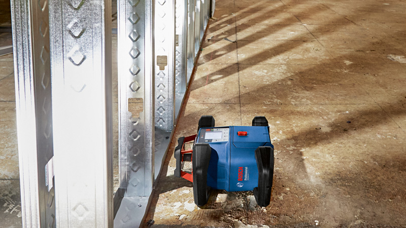 Rotationslaser GRL 600 CHV, Stabil, baustellensicher – der robuste GRL 600 CHV Professional bewährt sich auch unter härtesten Bedingungen. Seine stabile Bauweise macht ihn stoßfest und bietet gemäß IP68 Schutz gegen Staub und Wasser (einschließlich Batteriefach) für äußerst flexibles Arbeiten trotz schlechten Wetters. Er bietet praktische Konnektivität und gewährleistet so fokussierteres Arbeiten mit weniger Zeitverschwendung. Dank seines Bildschirms und des Zugangs zur Levelling Remote App, die alle Funktionen, einschließlich der Zweifach-Neigungseinstellung, visualisiert und damit wertvolle Zeit spart, ist die Bedienung des Geräts intuitiv. Dieser hochpräzise Laser bietet sowohl mit dem 18V-Akkusystem als auch mit den beigelegten Alkali-Batterien lange Betriebszeit für unterbrechungsfreies Arbeiten. Dieses Werkzeug ist konzipiert für Außenanwendungen, bei denen es um Aushub-, Betonier-, Gartenbau- und Fassadenarbeiten geht. Der GRL 600 CHV bietet außerdem einen hochwertigen Empfänger mit 125 mm Empfangsfläche, zweiseitigem Display und einer Versatzfunktion in Millimeter. Das Kalibrieren des Werkzeugs erfolgt schnell und einfach entsprechend den schrittweisen Anweisungen in der intuitiven App - das spart Zeit und Ressourcen und garantiert bei jeder Arbeit exakte Resultate. Mit dem in der App verfügbaren praktischen „Maskenmodus“ können Reflexionen und Interferenzen mit anderen Geräten auf der Baustelle vermieden werden. Laser-Empfänger LR 60 Professional (0 601 069 P00). Empfängerhalterung RB 60 Professional. Akku-Adapter BA 1 Professional. 4 x Batterie LR20 1,5V (D). 2 x 1,5 V LR6-Batterie (AA). L-BOXX 374 (1 600 A01 2G3)