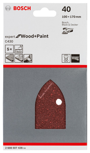 Produktinformationen "Bosch Schleifblatt C430, 10-teilig, 102 x 62, 93 mm, 40, 11 Löcher"