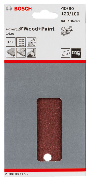 Produktinformationen "Bosch Schleifblatt C430, 115 x 280 mm, 40, 14 Löcher, 10er-Pack"