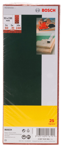 | Inhalt: | 25 Schleifblätter Klett 4 Löcher 10 Stück Körnung 80 10 Stück Körnung 120 5 Stück Körnung 180 |