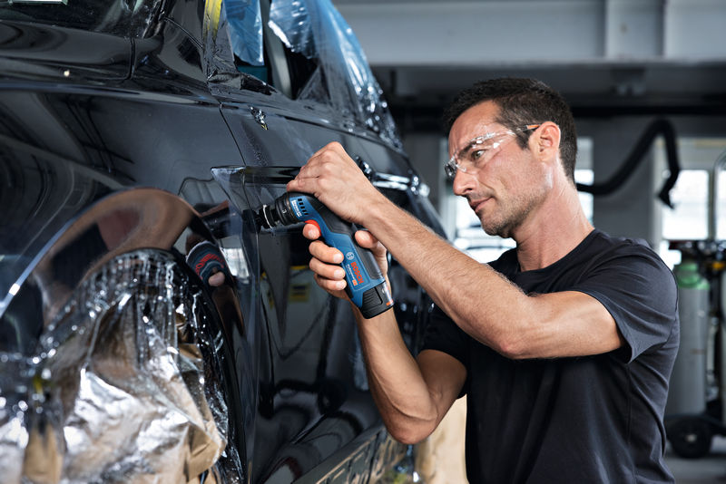Schwingschleifer GSS 12V-32, Der Akku-Schleifer GSS 12V-32 ist ein leistungsstarker Punktschleifer, auf den Sie sich verlassen können - dank seines kraftvollen Bosch Professional 12V Systems und des bürstenlosen Motors. Die hervorragende Ergonomie dieses kompakten und komfortabel zu bedienenden Werkzeugs macht effizientes Feinstschleifen ermüdungsfrei und einfach. Über die komfortablen HMI-Funktionen können Sie die Drehzahlstufe mit dem Auslöseschalter für variable Drehzahl vorwählen und feineinstellen und außerdem den Akkustatus prüfen. Der GSS 12V-32 eignet sich zum Punktschleifen, Reparieren von lackierten Oberflächen und den Finish im Kfz-Bereich. Er kann zum Trocken- und Nassschleifen verwendet werden. Das Professional 12V System ist mit allen GBA 12V Akkus kompatibel. Der GSS 12V-32 verfügt über einen Schwingkreis von 3 mm für die Schwingbewegung und einen Schleifteller von 32 mm. Schleifteller (32 mm) für selbstklebendes Schleifpapier (2 608 001 117). Schleifteller (32 mm) für Klett-Schleifpapier (2 608 001 118)