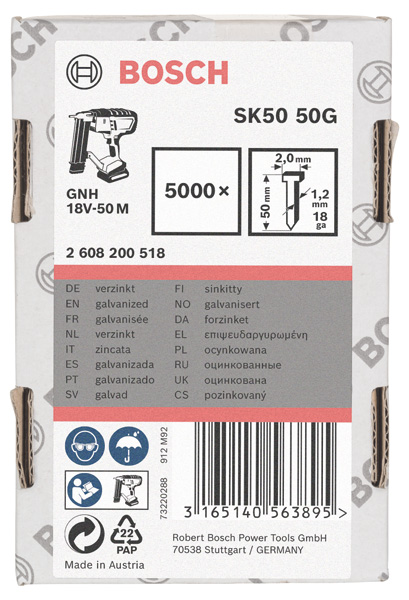 Produktinformationen "Bosch Senkkopf-Stift SK50 30G, 1,2 mm, 30 mm, verzinkt, 5000er-Pack"