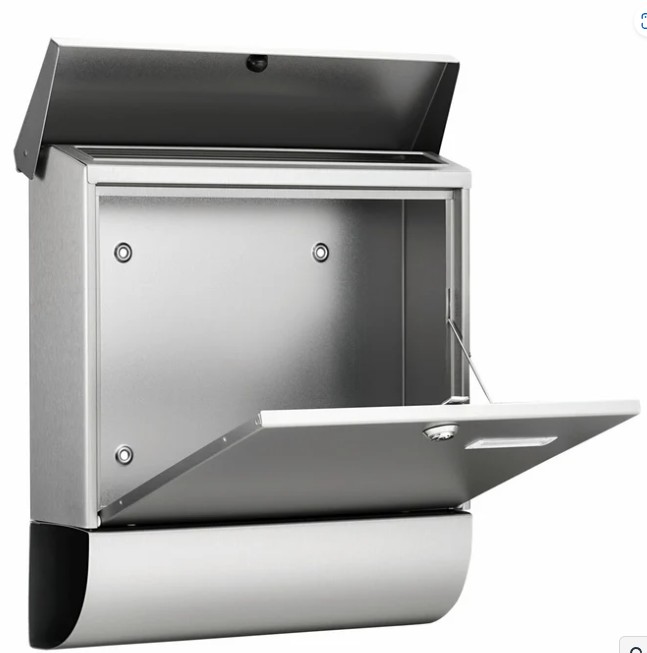 Der Amrum-Set 38670 Ni ist ein geräumiger Edelstahl-Briefkasten mit aufklappbarem Regendach. Mit der elegant abgerundeten Zeitungsbox bildet der Briefkasten Amrum-Set 38670 Ni eine harmonische Einheit. Da das Amrum-Set 38670 Ni aus Edelstahl besteht, ist es extrem witterungsbeständig. Der Öffnungsstopp bieten höchsten Komfort bei Ihrer täglichen Postentnahme.
