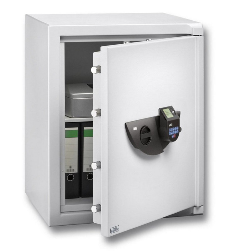 Der doppelwandige Aufbau des Korpus und der Tür ermöglicht dem Office 812 ein robustes und stabiles Grundgerüst. Durch die breiten Rundbolzen, die sowohl zur Veriegelungen an drei Seiten des Tresors als auch als Hintergreifriegel an der Bandseite dienen, ist der Office 812 optimal gegen Einbrecher geschützt. Sollten die äußeren Gewalteinwirkungen den Angriffsflächen an der Tür dennoch schaden, besitzt er noch das Notveriegelungssystem. Zusätzlich ist er für eine Bodenverankerung ausgelegt, das passende Befestigungsmaterial ist selbstverständlich im Lieferumfang enthalten.