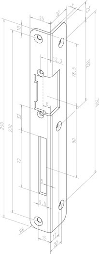 effeff, Türrahmen-Elektro-Türöffner, Modellnummer: 1705, Ausführung: mit Winkelschließblech, mit Riegelausschnitt, Bauform: symmetrisch, Ergänzung: mit verstellbarer Falle, für Zutrittskontrollanlage, mit Diode, DIN-Richtung: DIN Links, Einbaulage: senkrecht, waagerecht, Entriegelung: ohne, Funktion: Arbeitsstrom, Schließblechausführung: abgerundet, Schließblechbreite: 25 mm, Schließblechlänge: 250 mm, Schließblechstärke: 3 mm, Schließblechtiefe: 32 mm, Material Schließblech: Edelstahl, Farbton Schließblech: edelstahl, Oberfläche Schließblech: geschliffen, Befestigungsart: zum Einlassen, Material Gehäuse: Zinkdruckguss, Einzelteilmaterial Falle: Zinkdruckguss, Einzelteilmaterial Aufschraubstück: Messing, Öffnerbreite: 20,5 mm, Öffnerhöhe: 75 mm, Öffnertiefe: 28 mm, Spannung: 12 V, Spannungsart: DC, Stromanschluss: klemmbar, steckbar, Stromart: DC, Stromaufnahme DC: 270 mA, Fallenvorlast DC max.: 10 N, Aufbruchfestigkeit: 3500 N, Betriebstemperatur min.: -15 °C, Betriebstemperatur max.: 40 °C, Kontaktbelastbarkeit: 1 A, Nennwiderstand: 44 O, Türart: Abschlusstür, Türausprägung: Türe gefälzt, Türflügelanzahl: einflügelig, Rahmenwerkstoff: Holz, Aluminium, Kunststoff