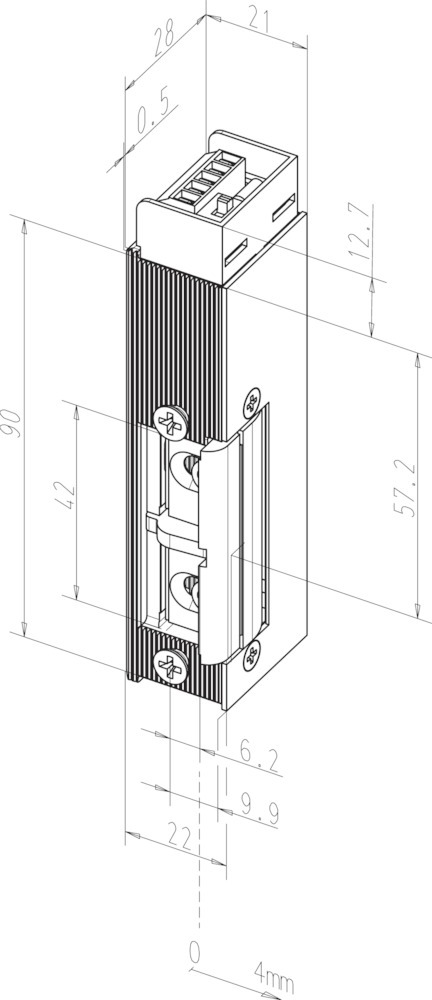 effeff, Türrahmen-FH-Türöffner, Modellnummer: 142USR, Ausführung: ohne Schließblech, Bauform: asymmetrisch, Ergänzung: mit verstellbarer Falle, verstellbar, mit Diode, mit Fixrillen, mit Rückmeldekontakt, mit elektrischer Dauerentriegelung, DIN-Richtung: DIN Rechts, Einbaulage: senkrecht, waagerecht, Entriegelung: ohne, Funktion: Arbeitsstrom, Kompatibel: zu Standard Schließblech, Befestigungsart: zum Einlassen, Öffnerbreite: 21 mm, Öffnerhöhe: 103 mm, Öffnertiefe: 28 mm, Verstellbereich Falle: 4 mm, Spannung min.: 12 V, Spannung max.: 24 V, Spannungsart: AC/DC, Stromanschluss: klemmbar, steckbar, Stromaufnahme AC bei 12V: 130 mA, Stromaufnahme AC bei 24V: 70 mA, Stromaufnahme DC bei 12V: 210 mA, Stromaufnahme DC bei 24V: 105 mA, Fallenvorlast AC max.: 50 N, Fallenvorlast DC max.: 10 N, Aufbruchfestigkeit: 6.500 N, Betriebstemperatur min.: -15 °C, Betriebstemperatur max.: 40 °C, Kontaktbelastbarkeit: 1 A, Nennwiderstand bei 12V: 57,5 O, Nennwiderstand bei 24V: 230 O, Türart: Abschlusstür, Türausprägung: Türe gefälzt, Türe stumpf, Türflügelanzahl: einflügelig, Rahmenwerkstoff: Holz, Aluminium, Kunststoff, Zulassung: für Feuerschutz, Norm: DIN EN 14846, Zusatzinformation: 12/24 Volt umschaltbar für AC und DC Betrieb