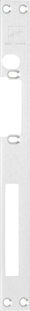 effeff, Türrahmen-Flachschließblech, Ausführung: für Türöffner, mit Fixrillen, Modellnummer: 050, Material: Stahl, DIN-Richtung: DIN Rechts, Farbton: stahl, Oberfläche: verzinkt, geschliffen, Ausfräsung: mit Fallen und Riegelausschnitt, Türausprägung: Türe stumpf, Türflügelanzahl: einflügelig, Befestigungsart: zum Aufschrauben, Anzahl Befestigungsbohrungen: 4 St., Schließblechbreite: 25 mm, Schließblechlänge: 250 mm, Schließblechstärke: 3 mm, Schließblechausführung: kantig, Vorgerichtet: für wasserdichte Türöffner, Türart: Objekttür, Haustür, Rahmenwerkstoff: Holz, Aluminium, Kunststoff