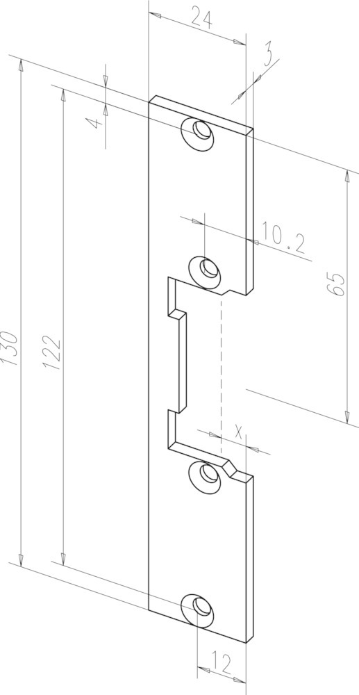 effeff, Türrahmen-Flachschließblech, Ausführung: für Türöffner, kurz, Modellnummer: 096, Material: Edelstahl, DIN-Richtung: DIN Links-Rechts, Farbton: edelstahl, Oberfläche: geschliffen, Ausfräsung: mit Fallenausschnitt, Türausprägung: Türe stumpf, Türflügelanzahl: einflügelig, Befestigungsart: zum Aufschrauben, Anzahl Befestigungsbohrungen: 2 St., Schließblechbreite: 24 mm, Schließblechlänge: 130 mm, Schließblechstärke: 3 mm, Schließblechausführung: kantig, Maß X min.: 0 mm, Maß X max.: 4 mm, Vorgerichtet: für Standardanwendungen, Türart: Objekttür, Haustür, Rahmenwerkstoff: Holz, Aluminium, Kunststoff