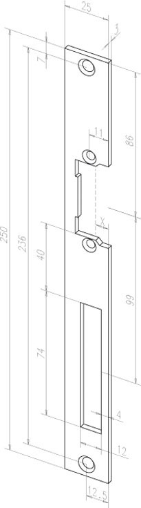 effeff, Türrahmen-Flachschließblech, Ausführung: für Türöffner, Modellnummer: 426, Material: Stahl, DIN-Richtung: DIN Links-Rechts, Farbton: stahl, Oberfläche: verzinkt, geschliffen, Ausfräsung: mit Fallen und Riegelausschnitt, Türausprägung: Türe stumpf, Türflügelanzahl: einflügelig, Befestigungsart: zum Aufschrauben, Anzahl Befestigungsbohrungen: 2 St., Schließblechbreite: 25 mm, Schließblechlänge: 250 mm, Schließblechstärke: 3 mm, Schließblechausführung: kantig, Vorgerichtet: für Standardanwendungen, Türart: Objekttür, Haustür, Rahmenwerkstoff: Holz, Aluminium, Kunststoff