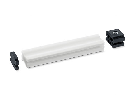 GEZE Öffnungsbegrenzung für GEZE Gleitschiene-Türschließer. Für Standard-Gleitschienen Bandseite und Bandgegenseite verwendbar. Vernietet. Auch für Boxer 20,7 mm-Gleitschiene.