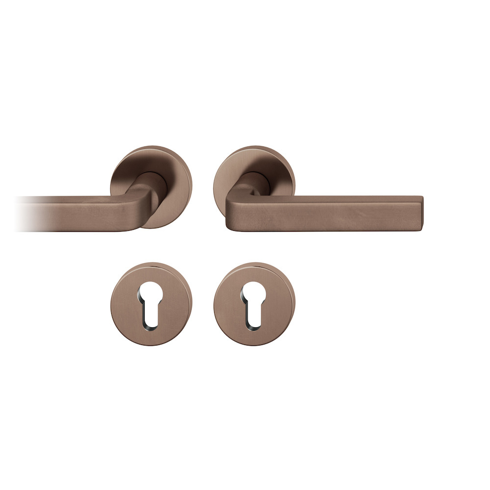 ASL Drückergarnitur 7mm PZ Rundrosette max. 45°. TS 39-58mm Bronze dunkel patiniert gew.