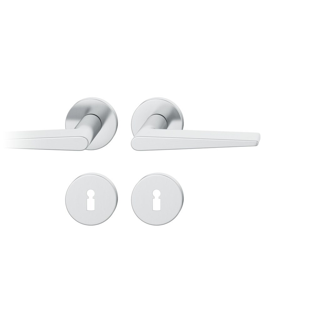 FSB Drückergarnitur 12 1005, Rosette, rund, Buntbart gelocht, Vierkant 8,5mm, DIN Links-Rechts, Türstärke 39 - 58mm, mit Stütznocken, edelstahl fein matt Adapter-Standardlager