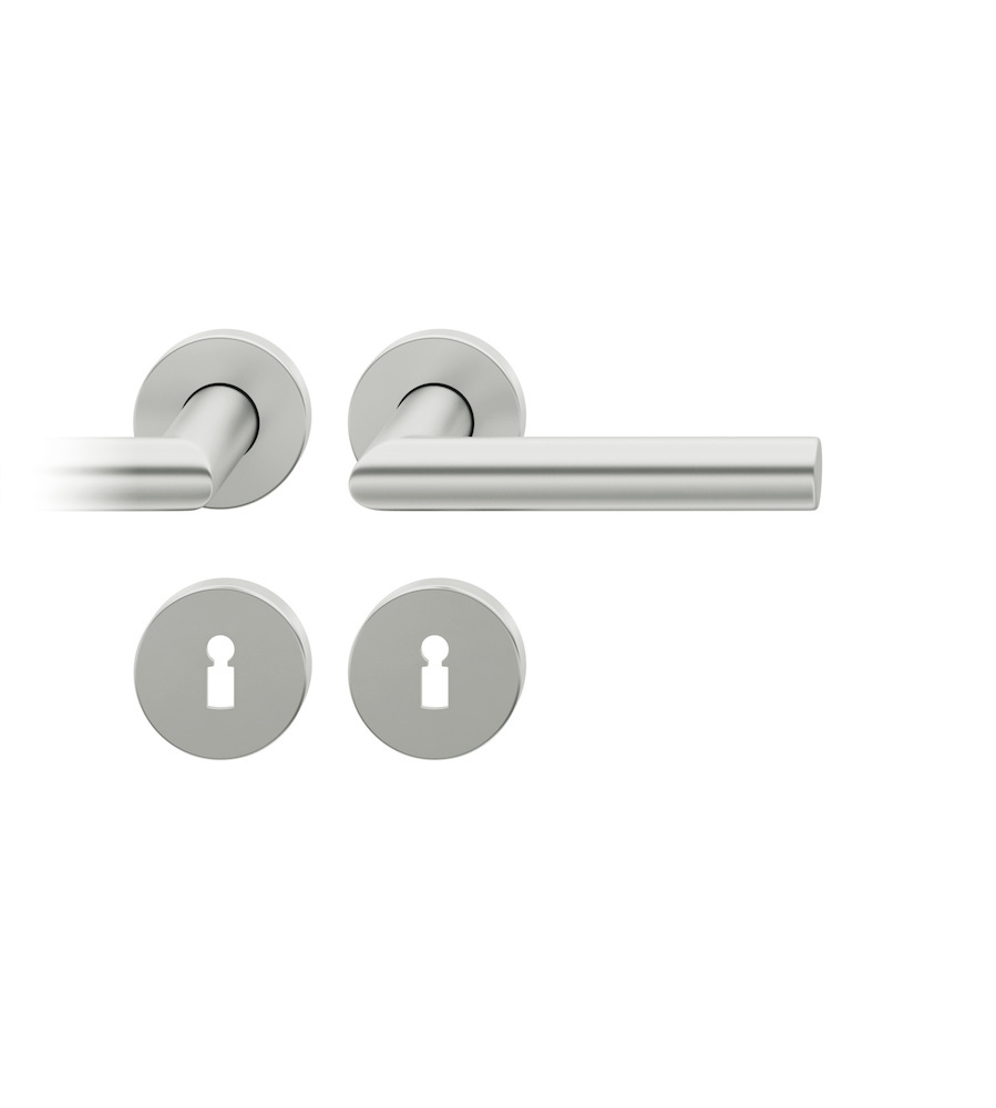 FSB Drückergarnitur 12 1076; Produkttyp: Drückergarnitur; Produkttyp (Hersteller): Drückergarnitur; Ausführung: Rosette; Befestigungsart Drückerrosette (außen): verdeckt verschraubt; Befestigungsart Drückerrosette (innen): verdeckt verschraubt; Befestigungsart Schlüsselrosette (außen): verdeckt verschraubt; Befestigungsart Schlüsselrosette (innen): verdeckt verschraubt; Befestigungstechnik: mit Stütznocken; Montageart: aufliegend; Form Drückerrosette: rund; Form Schlüsselrosette (außen): rund; Form Schlüsselrosette (innen): rund; Vierkant: 7 mm; Material: Aluminium; Material Unterkonstruktion (Griffrosette): Kunststoff-Edelstahlverbundbau; Form Türgriff (innen): L-Form; Form Türgriff (außen): L-Form; Durchmesser Türgriff (innen): 21 mm; Durchmesser Türgriff (außen): 21 mm; Durchmesser Schlüsselrosette: 55 mm; Länge Türgriff (innen): 137 mm; Länge Türgriff (außen): 137 mm; Höhe Türgriff (innen): 58 mm; Höhe Türgriff (außen): 58 mm; Durchmesser Drückerrosette (außen): 55 mm; Durchmesser Drückerrosette (innen): 55 mm; Höhe Drückerrosette (außen): 7 mm; Höhe Drückerrosette (innen): 7 mm; Höhe Schlüsselrosette (außen): 7 mm; Höhe Schlüsselrosette (innen): 7 mm; Lagerung: mit Rückholfeder, festdrehbar, Adapter-Standardlager; Einsatzbereich: Objekttür; Türart: Vollblatt; Türwerkstoff: Stahl, Holz; Lochung: Chubb gelocht; DIN-Richtung: DIN Links-Rechts; Farbe: silber; Farbton: naturfarben; Oberfläche: eloxiert; Material Unterkonstruktion (Schlüsselrosette): Kunststoff-Edelstahlverbundbau; Ausführung Vierkant: Stabilstift; Betätigungswinkel max.: 45 °; Türstärke min.: 39 mm; Türstärke max.: 58 mm; Norm: DIN EN 1906