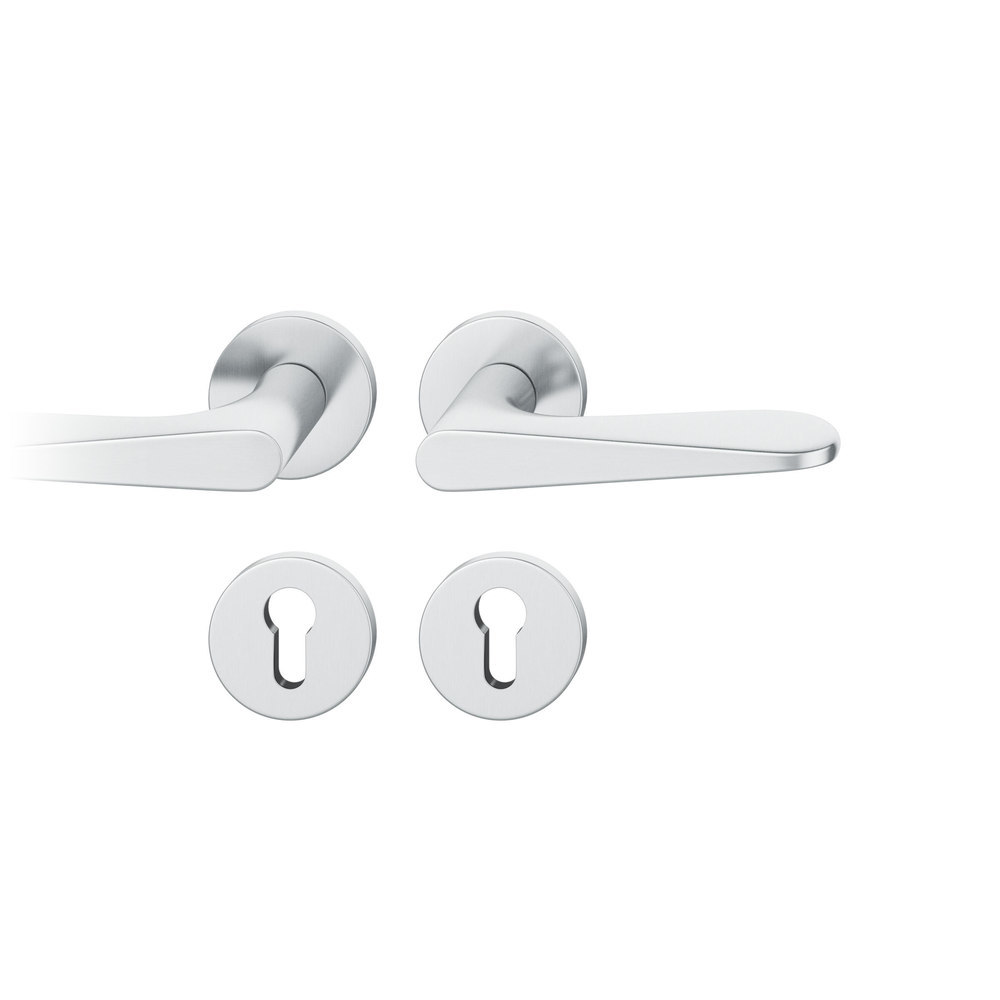 Produktinformationen "FSB Drückergarnitur 12 1144, Rosette, rund, Profilzylinder gelocht, Vierkant 8,5mm, DIN Links-Rechts, Türstärke 39 - 58mm, mit Stütznocken, edelstahl fein matt Adapter-Standardlager"