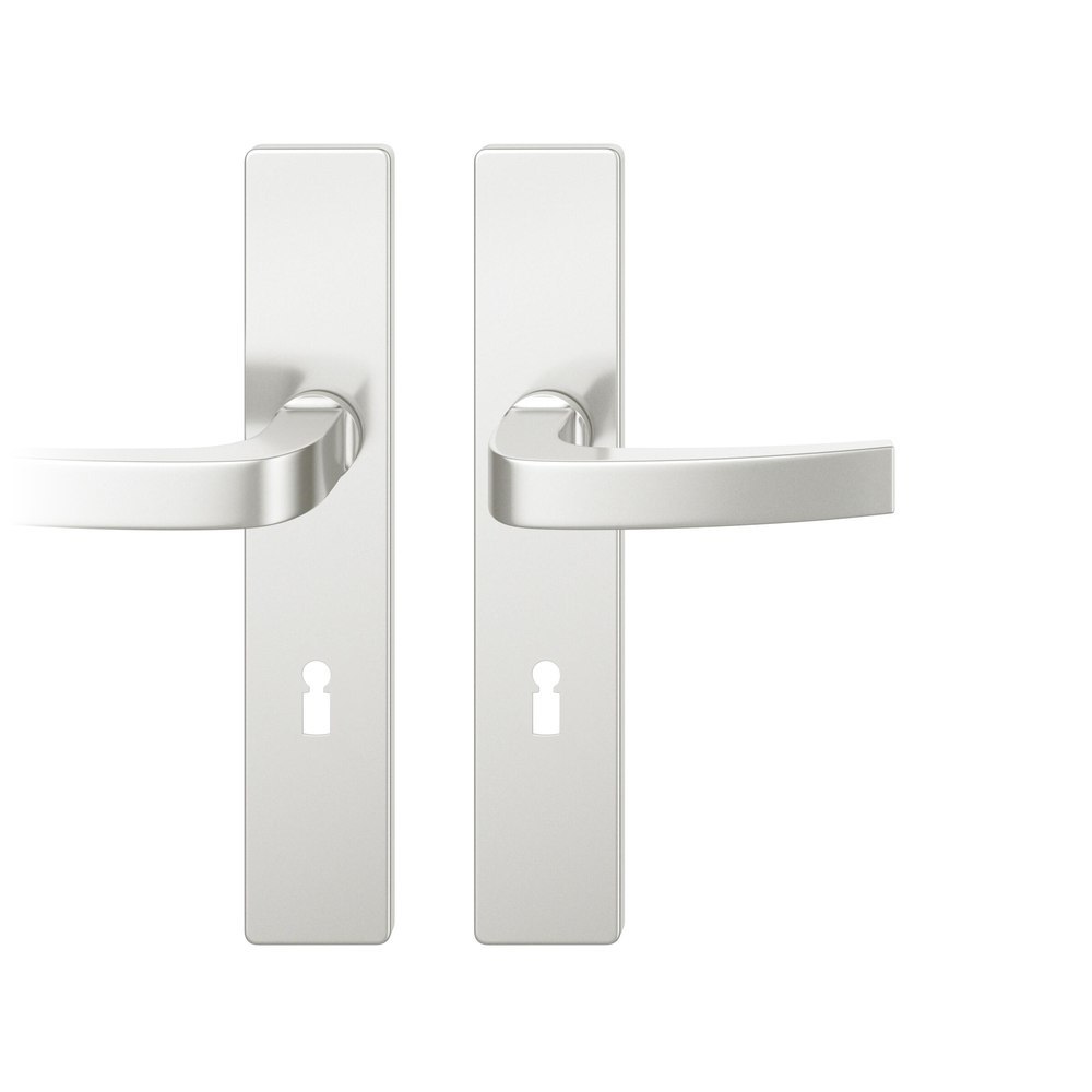 FSB Drückergarnitur 12 1163, Langschild, eckig, Buntbart gelocht, Entfernung 90mm, Vierkant 8,5mm, DIN Links-Rechts, Türstärke 39 - 58mm, mit Stütznocken, naturfarben eloxiert, Adapter-Standardlager