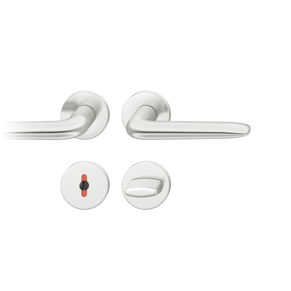 Produktinformationen "FSB Drückergarnitur 12 1292, Rosette, rund, WC Schauscheibe/Schlitzkopf, Vierkant 8mm, Riegel-Vierkant 8mm, Türstärke 39 - 58mm mit Stütznocken, naturfarben eloxiert"