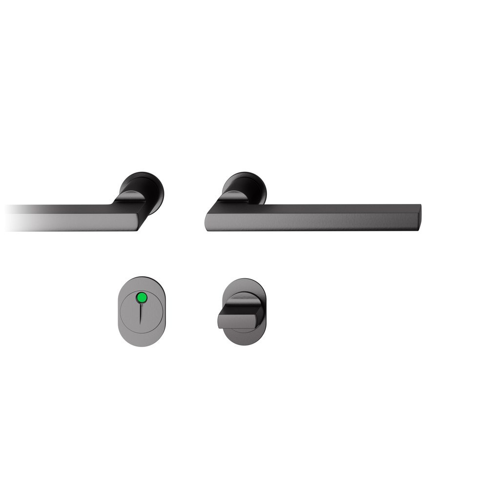 FSB Drückergarnitur 15 1035, Rosette, rund, WC Schauscheibe/Schlitzkopf, Vierkant 8mm, Riegel-Vierkant 8mm, DIN Links-Rechts, Türstärke 39 - 47mm, ohne Stütznocken, tiefschwarz, ähnlich RAL 9005 farbig kunststoffbeschichtet