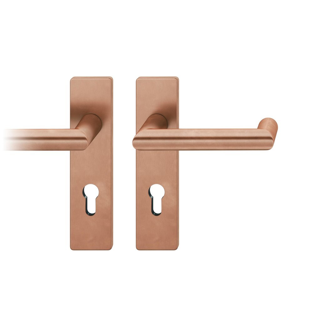 FSB Drückergarnitur 72 1016; Produkttyp: Drückergarnitur; Produkttyp (Hersteller): Drückergarnitur; Ausführung: Kurzschild; Befestigungsart: verdeckt verschraubt; Befestigungstechnik: mit Stütznocken; Form: eckig; Vierkant: 8 mm; Material: Bronze; Material Unterkonstruktion: Kunststoff; Form Türgriff (innen): Gehrung, U-Form; Form Türgriff (außen): Gehrung, U-Form; Durchmesser Türgriff (innen): 21 mm; Durchmesser Türgriff (außen): 21 mm; Länge Türgriff (innen): 143 mm; Länge Türgriff (außen): 143 mm; Höhe Türgriff (innen): 58 mm; Höhe Türgriff (außen): 58 mm; Schildbreite außen: 45 mm; Schildbreite innen: 45 mm; Schildlänge außen: 185 mm; Schildlänge innen: 185 mm; Schildstärke außen: 7 mm; Schildstärke innen: 7 mm; Lagerung: mit Rückholfeder, Ausgleichslager® 3, festdrehbar; Einsatzbereich: Objekttür; Türart: Vollblatt; Türwerkstoff: Holz, Stahl; Norm: DIN EN 1906; Lochung: Profilzylinder gelocht; Entfernung: 72 mm; DIN-Richtung: DIN Links; Farbe: braun; Farbton: hellbronze; Oberfläche: patiniert gewachst; Ausführung Vierkant: Stabilstift; Betätigungswinkel max.: 35 °; Türstärke min.: 39 mm; Türstärke max.: 48 mm; EN 1906 - Gebrauchskategorie: Klasse 4; EN 1906 - Dauerhaftigkeit: Klasse 7; EN 1906 - Türmasse: -; EN 1906 - Feuerbeständigkeit: Klasse 0; EN 1906 - Sicherheit: Klasse 1; EN 1906 - Korrosionsbeständigkeit: Klasse 5; EN 1906 - Einbruchschutz: Klasse 0; EN 1906 - Ausführungsart: Typ B; Klassifizierungsschlüssel EN 1906: 47-0150B