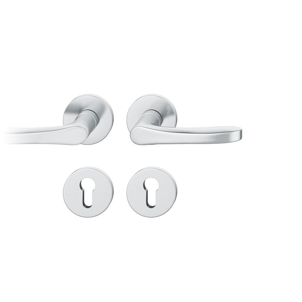 Produktinformationen "FSB Drückergarnitur 72 1106, Rosette, rund, Profilzylinder gelocht, Vierkant 8mm, DIN Links, Türstärke 39 - 48mm, mit Stütznocken, edelstahl fein matt Ausgleichslager® 3"