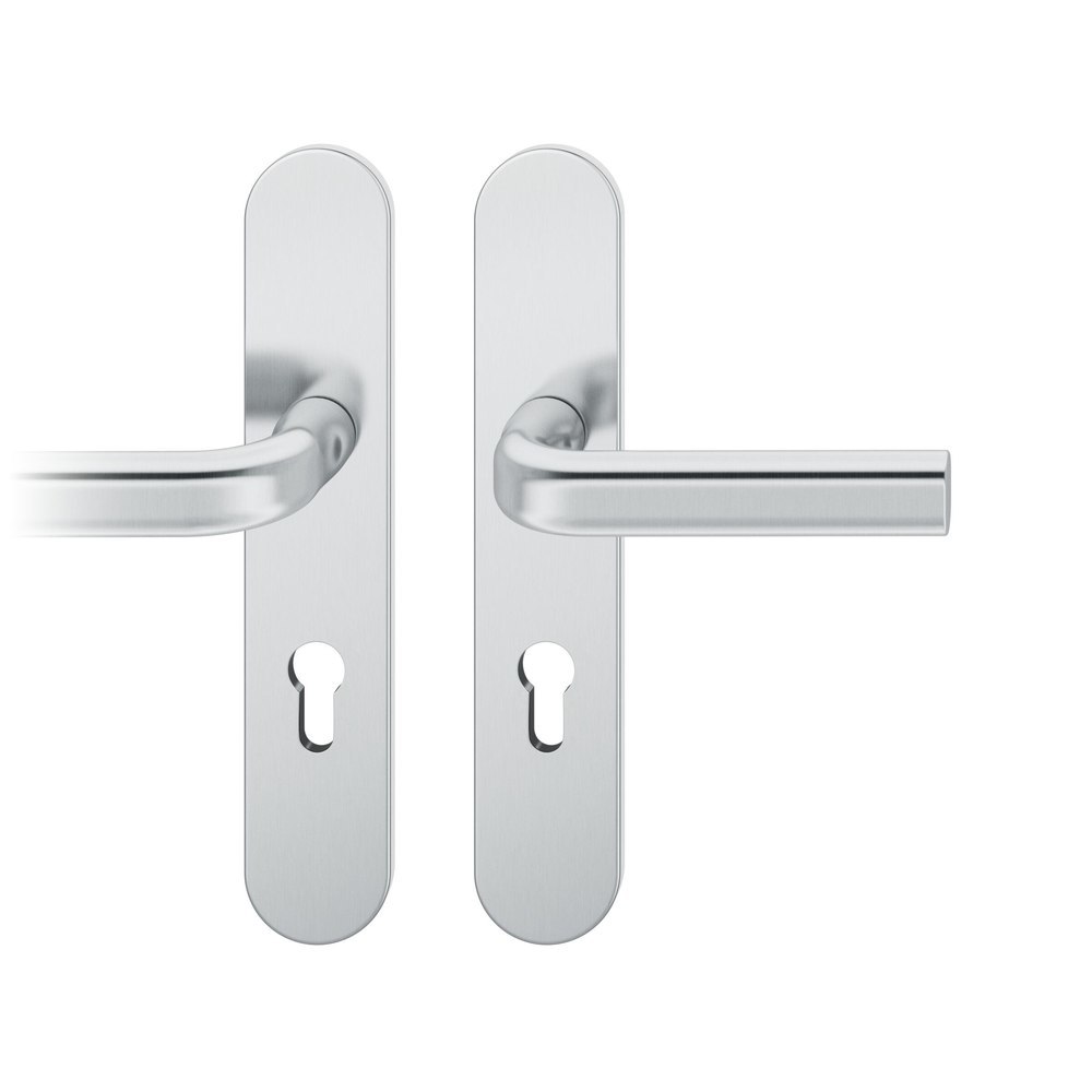 AGL3-Drückergarnitur rechts, 8mm PZ 72mm ovales Langschild, max. 35°. TS 39-48mm, Edelstahl fein matt