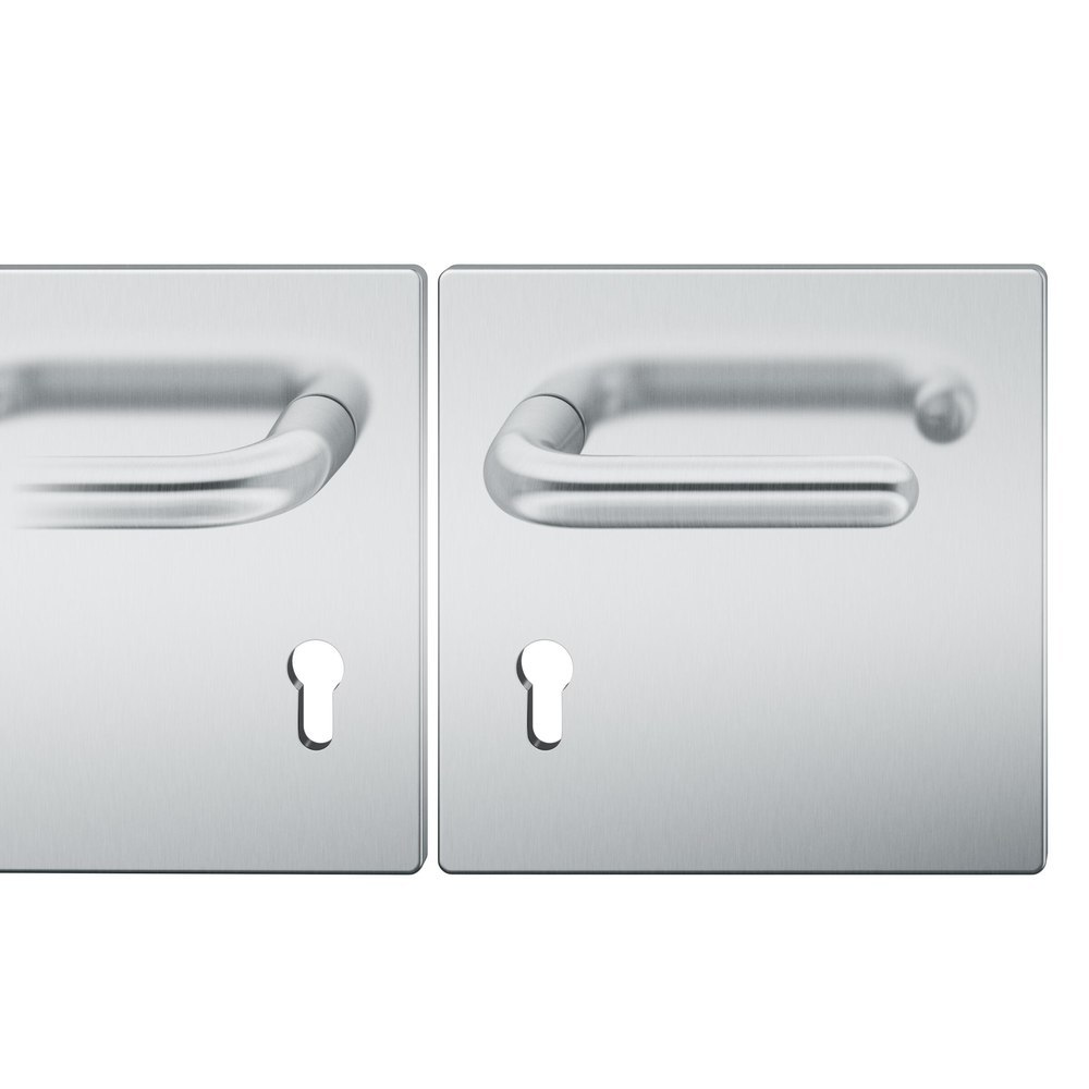 Produktinformationen "FSB Drückergarnitur 72 1147, Breitschild, eckig, Profilzylinder gelocht, Entfernung 72mm, Vierkant 8mm, DIN Rechts, Türstärke 39 - 48mm, Befestigungstechnik mit Stütznocken, grau, edelstahl, fein matt, AGL3"