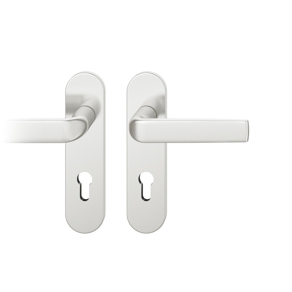AGL3-Drückergarnitur rechts, 8mm PZ 72mm ovales Kurzschild, max. 35°. TS 39-48mm, Aluminium naturfarbig