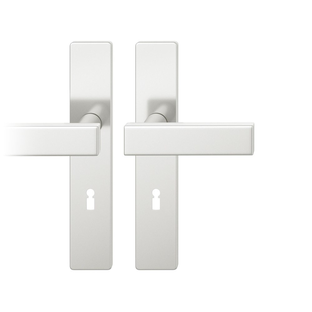 FSB Drückergarnitur 12 1003, Langschild, eckig, Buntbart gelocht, Entfernung 72mm, Vierkant 8mm, DIN Links-Rechts, Türstärke 39 - 58mm, mit Stütznocken, naturfarben eloxiert, Adapter-Standardlager