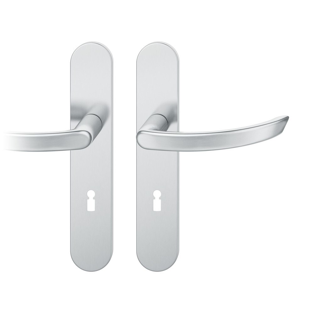 Produktinformationen "FSB Drückergarnitur 12 1119, Langschild, oval, Buntbart gelocht, Entfernung 72mm, Vierkant 8mm, DIN Links-Rechts, Türstärke 39 - 58mm, mit Stütznocken, edelstahl fein matt, Adapter-Standardlager"