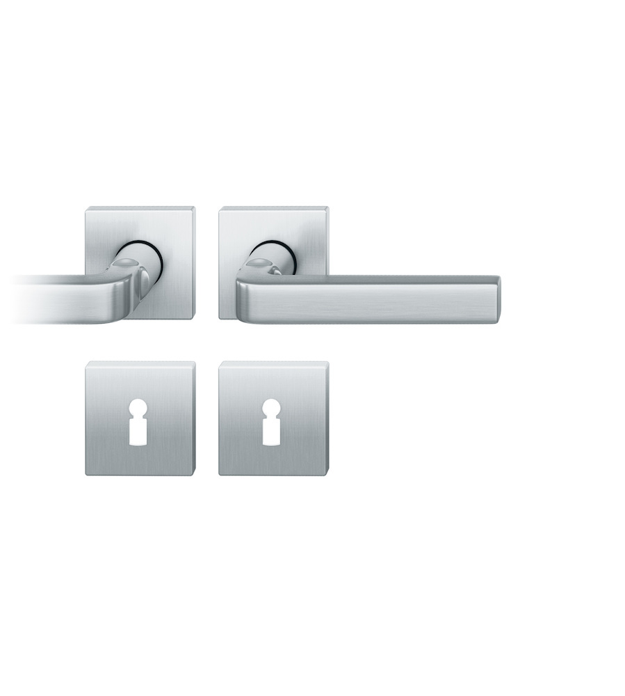 Produktinformationen "FSB Drückergarnitur 12 1004, Rosette, eckig, Chubb gelocht, Vierkant 7mm, DIN Links-Rechts, Türstärke 39 - 58mm, mit Stütznocken, naturfarben eloxiert Adapter-Standardlager"