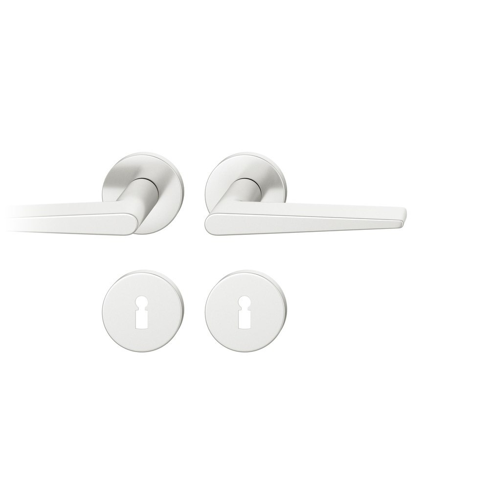 FSB Drückergarnitur 12 1005, Rosette, rund, Buntbart gelocht, Vierkant 8,5mm, DIN Links-Rechts, Türstärke 39 - 58mm, mit Stütznocken, naturfarben eloxiert Adapter-Standardlager