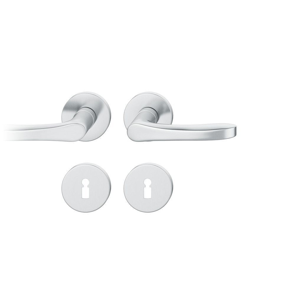 Produktinformationen "FSB Drückergarnitur 12 1106, Rosette, rund, Buntbart gelocht, Vierkant 8mm, DIN Links-Rechts, Türstärke 39 - 58mm, mit Stütznocken, edelstahl fein matt Adapter-Standardlager"