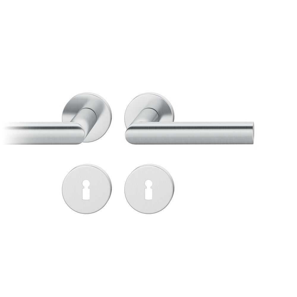 Produktinformationen "FSB Drückergarnitur 72 1108, Rosette, rund, Buntbart gelocht, Vierkant 8mm, DIN Links, Türstärke 39 - 48mm, mit Stütznocken, edelstahl fein matt Ausgleichslager® 3"