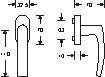 Fenstergriff schm.ovale Ros. 7mm Stift. 10mm Nocken Stiftüberstand 24-38mm Edelstahl fein matt
