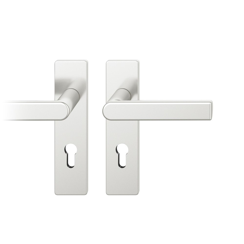 FS-AGL3-Drückergarnitur links 9mm PZ 72mm eckiges Kurzschild max. 35°. TS 39-48mm Aluminium naturfarbig